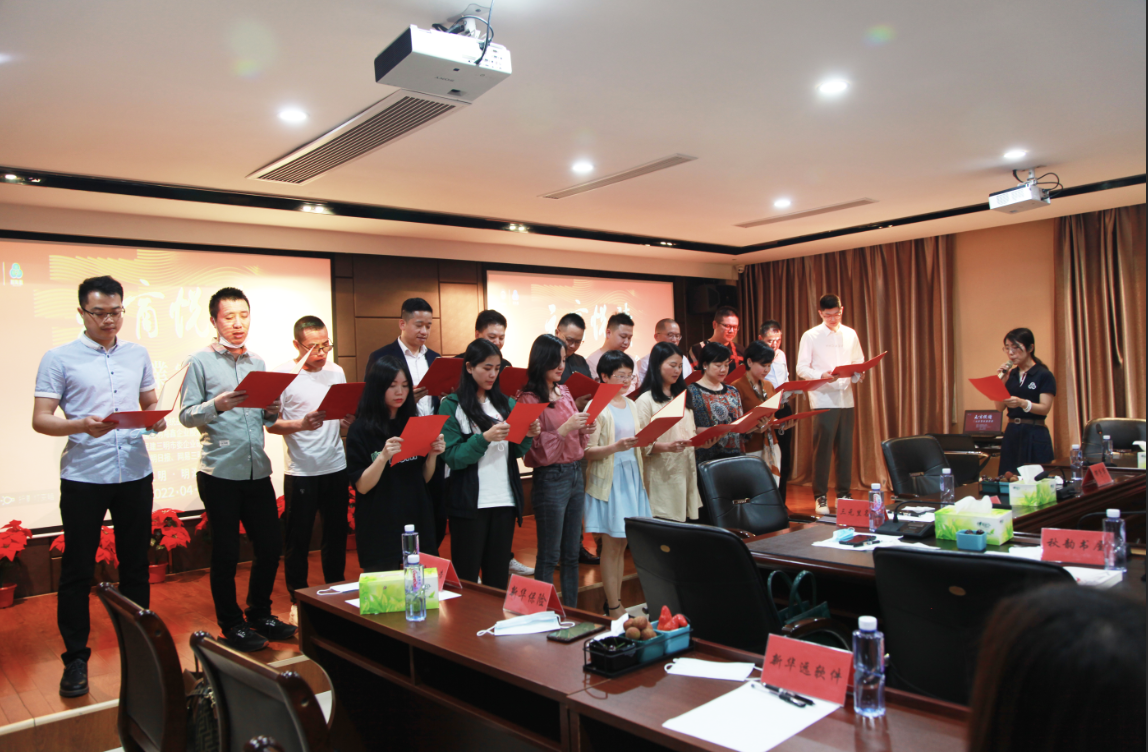 最后,由三明區委常委、統戰部長伍英和明海鑫公司向第四期承辦企業秋韻書屋授旗。